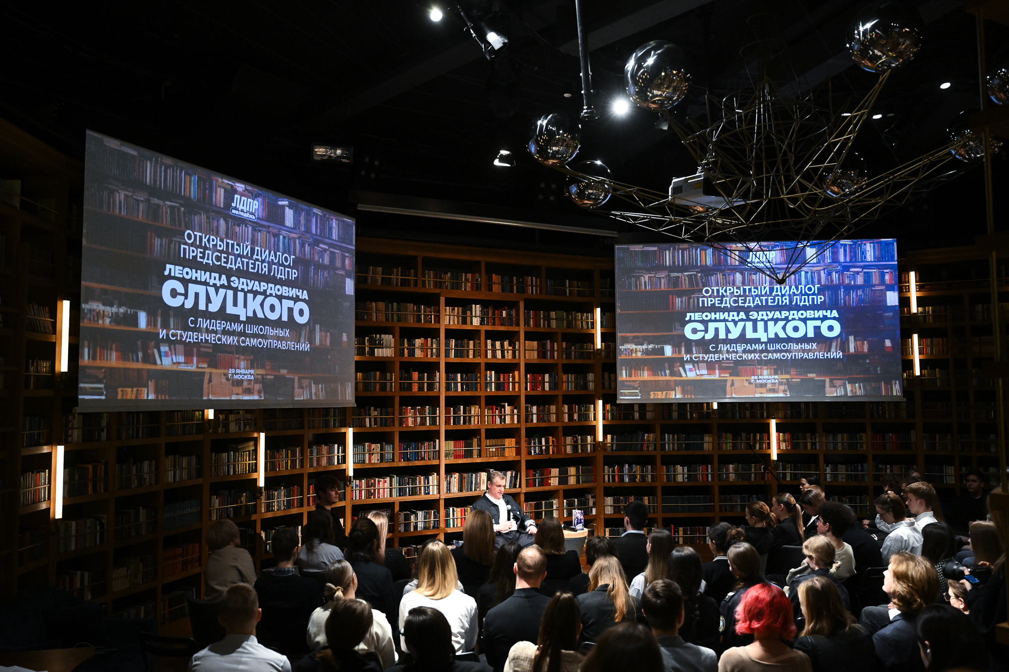 Председатель ЛДПР Леонид Слуцкий в Москве на встрече со школьниками и учащимися средних профессиональных учебных заведений объявил о запуске Всероссийского конкурса имени Владимира Жириновского на право бесплатного обучения в Университете мировых цивилизаций