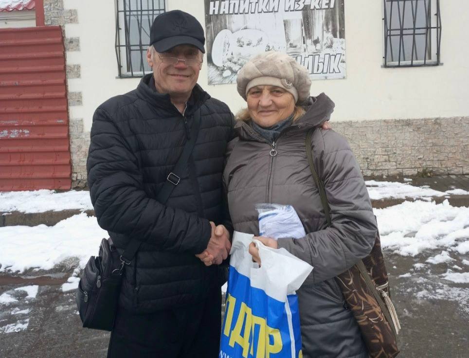 Депутат Совета депутатов и координатор Новосибирского района Виктор Реутов поздравил ветерана-продавца Плотниковского мясокомбината Галину Шилкину.