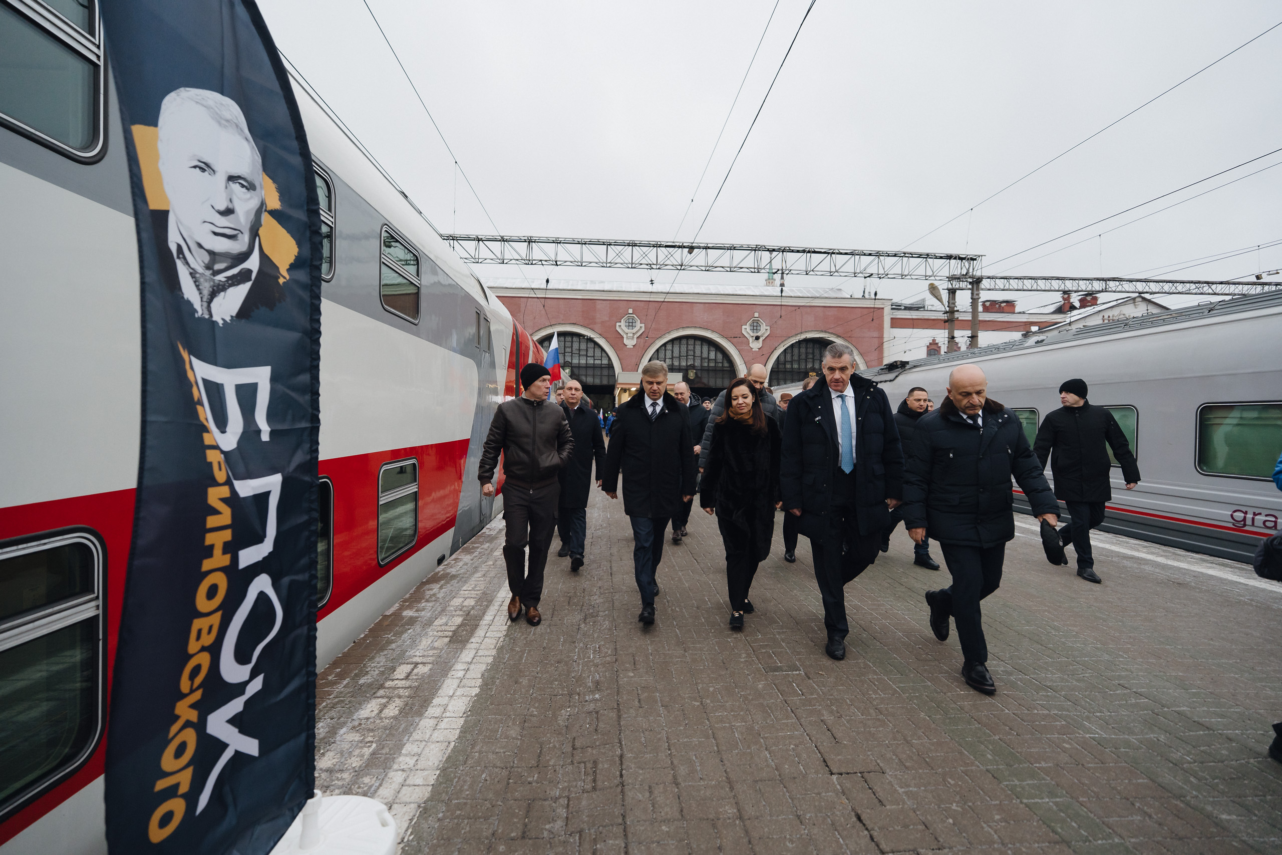 Леонид Слуцкий отправил в первый рейс по маршруту Москва – Адлер двухэтажный пассажирский поезд с тематическим вагоном «Россия. Жириновский»